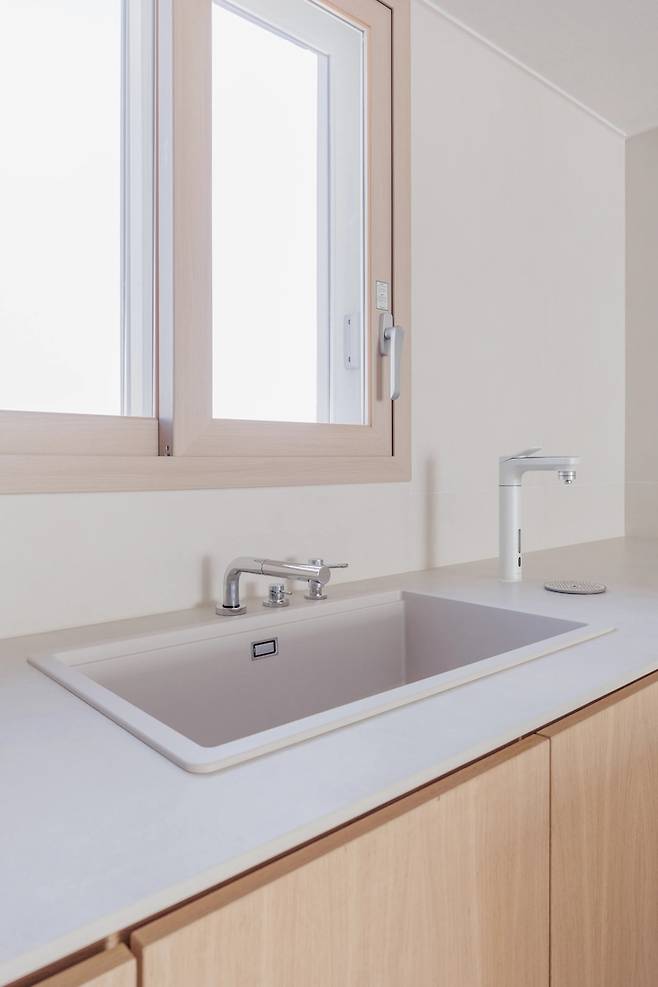 주방 쪽 창문의 경우 밖으로 보이는 풍경이 좋고, 물이 많이 닿을 수 있을 것 같아서 따로 블라인드는 하지 않았어요.