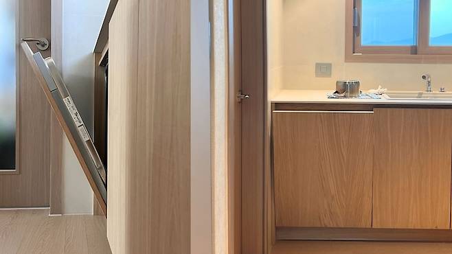 수납공간들이지만 문을 닫으면 티 안 나는 깔끔함. 군더더기 없이 딱 떨어지는 이 선들이 굉장히 편안함을 준답니다.