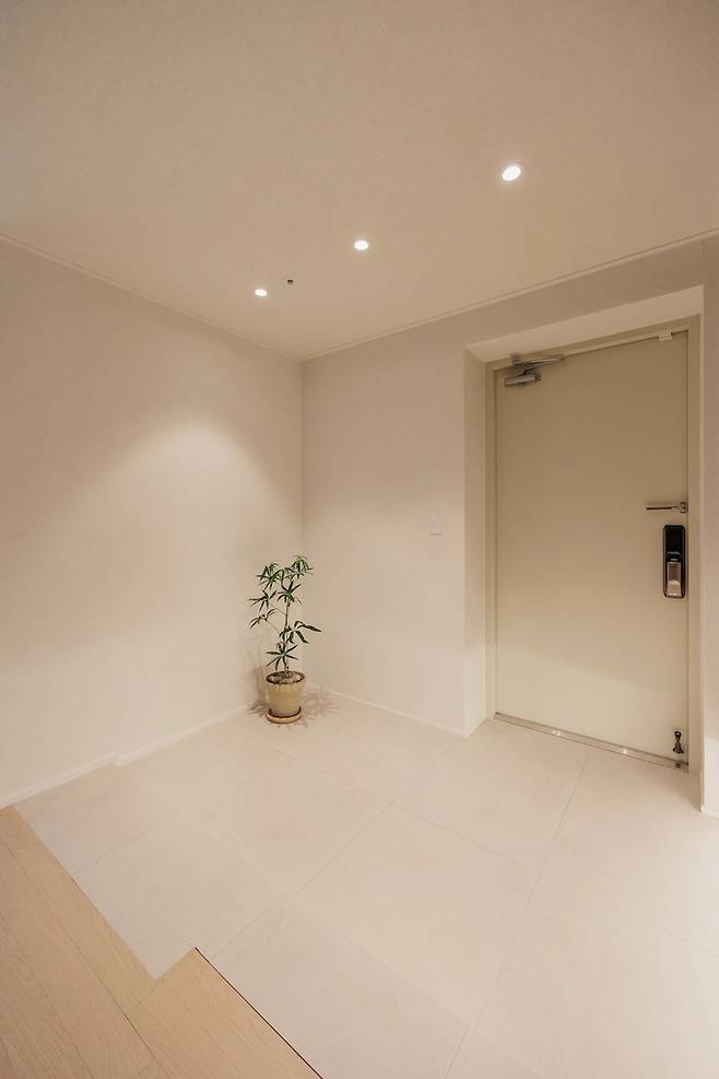 지금은 단촐하게 화분 하나를 두었지만 조금 더 근사한 오브제를 두어 좋은 기운이 드는 입구로 꾸며보고 싶어요.