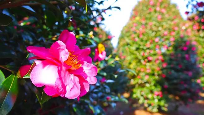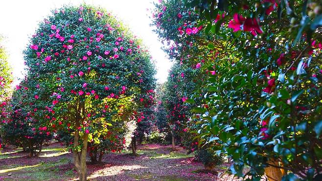 165년 전 한 여성의 손으로 시작된 이 숲은 오늘날 제주의 대표 겨울 명소가 되었다. 바로 '위미동백나무군락'.