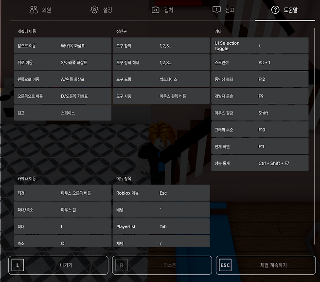 📍 Tip: 게임 중 [Esc] → [도움말(Help)]을 누르면 해당 맵의 고유 조작법을 바로 확인할 수 있어요!