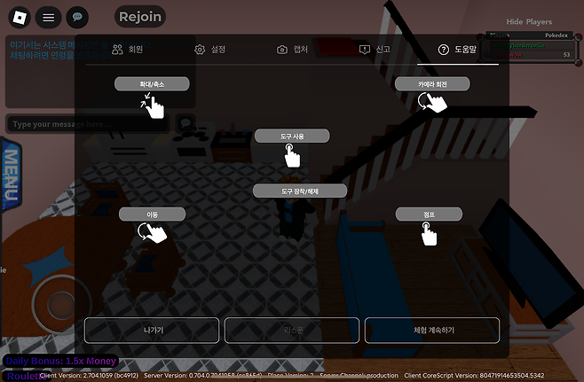 로블록스는 수만 개의 게임이 모여 있어서, 테마에 따라 특수 키가 추가되기도 합니다.