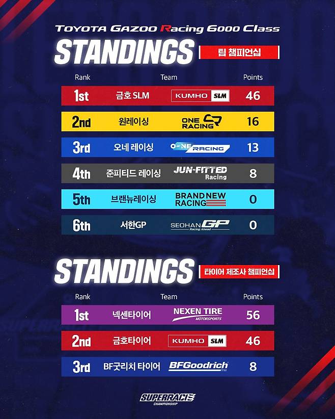 신영학 감독은 "2년만의 복귀 무대에서 최고의 결과를 만들게 돼 매우 기쁘다"며 "두 선수 모두 집중력 있는 주행을 보여줬고, 타이어 퍼포먼스 역시 탁월했다. 올 시즌을 기대해도 좋을 것"이라고 말했다.