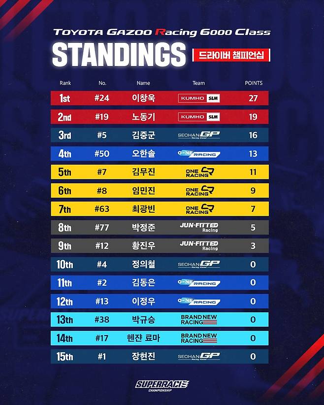 이번 개막전에서는 금호 SL모터스포츠팀의 경쟁력이 예선부터 돋보였다. 이창욱과 노동기 선수가 각각 예선 1·2위를 차지하며 우승을 예고했고, 금호타이어를 장착한 드라이버들이 예선 상위권을 휩쓸며 브랜드의 기술력을 입증했다.