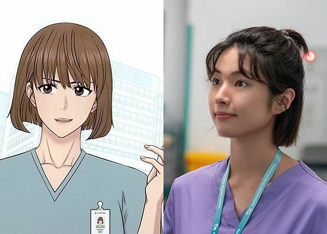 웹툰의 서하나 간호사(왼쪽)은 드라마에서 하영이 연기한 천장미 간호사로 바뀌었다. 사진제공=네이버 웹툰·넷플릭스