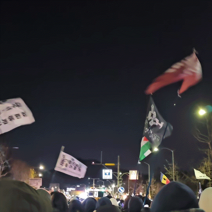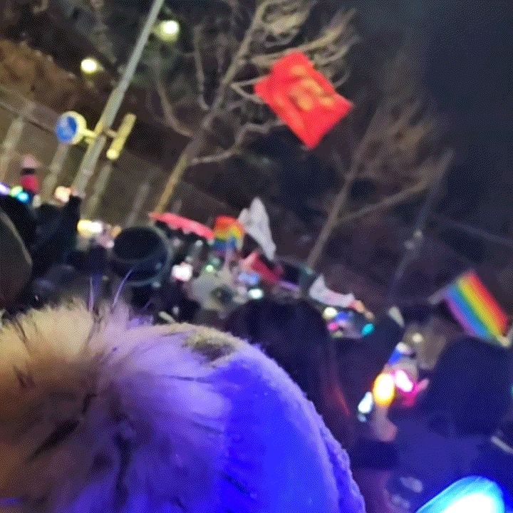 남태령에 8시즈음 도착했는데 그 땐 무슨 말이 있었냐면 경찰이 채증을 하니 마스크를 쓰고 응원봉을 숨기라고 했어. 농민들과 많은 젊은 여자가 있었는데 도로 가로등이 있어도 뭔가 어두컴컴한 느낌이었어. 특정하기 힘든 경광봉 같은 것만 몇 개가 켜져있었어. 이 때만 해도 조금 무서웠어. 그러다 시간이 30분, 1시간쯤 지났나? 사람이 엄청 많아졌고 누군가 이야기 한 것은 아닌데 사람들이 가방에 넣어놓은 응원봉을 하나 둘 켜기 시작했어. 이 정도 사람이면 안전하겠다. 그러니 좀 더 밝게 빛날 필요가 있다. 라고 다같이 생각한거야. 그랬더니 엄청 밝게 느껴지기 시작했고. 그게 제법 위협이 되었는지 경찰에서 안내 방송이 나왔지만 다들 그 소리가 묻히도록 더 크게 차 빼라를 외쳤어.