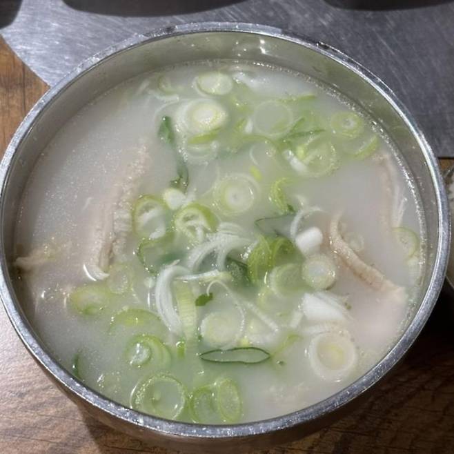 맑은 국물에 큼지막한 고기, 푸짐하게 들어간 대파가 돋보이는 곰탕.