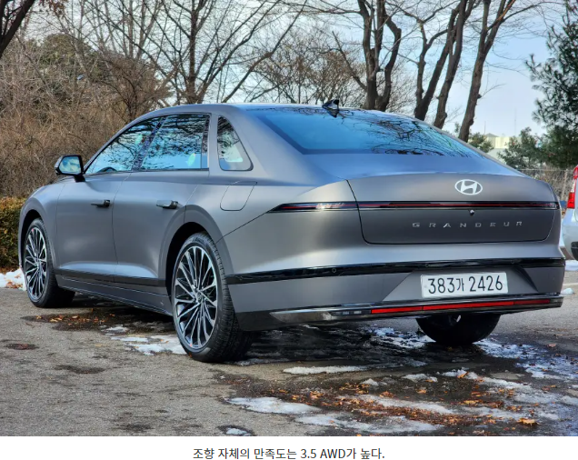 다만 더뉴그랜저(약 5cm) 대비 높아진 것이기 때문에 4WD 대비 낮은게 좋다는 것이지 아쉬운 점은 분명합니다. 무게중심이 더 낮은 새로운 플랫폼(=뼈대)가 적용되었기 때문에 헤드룸과 함께 잃은 점도 있지만 승차감 등을 더 챙긴 것도 있다는 점 참고하시면 좋겠네요.