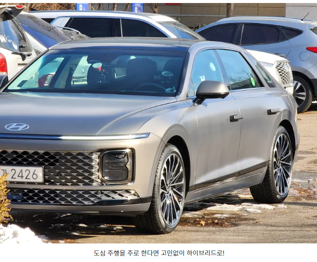 기대보다는 낮은 결과가 나온 이유는 아무래도 휠 크기가 큰 영향을 줬을거라고 봅니다. 제가 자주 경험하는 더뉴그랜저의 경우 하이브리드는 도로에서 가장 많이 보이는 공력휠이 17인치이고 옵션을 많은 넣은 차량이 18인치를 넣고 있습니다. 하지만 이번 시승차량에서는 무려 20인치 휠을 끼고 있기에 연비에서 많은 차이를 보일 수 밖에 없습니다. 사실 지난 6세대 그랜저 하이브리드 모델의 경우, 휠 크기가 17인치로 고정되어서 아쉬워하는 분들이 상당히 많았던 기억이 있습니다. 이번 7세대 하이브리드는 그런 점에서 '선택지'가 주어졌다는 건 높이 사고 싶습니다.