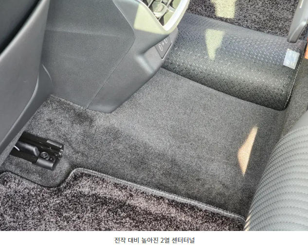 실내로 들어가면 거의 비슷하지만 다른 점이 있는데 가장 먼저 2열의 센터터널 높이입니다. 실측해보니 대략 9~10cm 정도가 되는데 이 센터터널은 낮을수록 2열 공간 환경에 유리하기에 소소익선이라 하겠습니다.