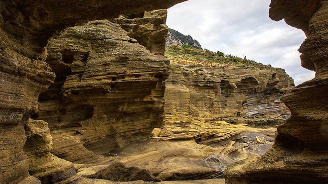 바다와 맞닿은 해안선에는 파도에 깎인 굴방이 곳곳에 숨어 있고, 단단한 사암이 만든 계단 같은 구조물은 마치 자연이 조각해 낸 거대한 예술 작품처럼 느껴진다.