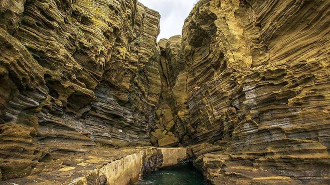 절벽 아래로 펼쳐진 파식대는 바다와 사람 사이를 잇는 다리처럼 이어져 있고, 실제로 그 위를 직접 걸을 수 있다.