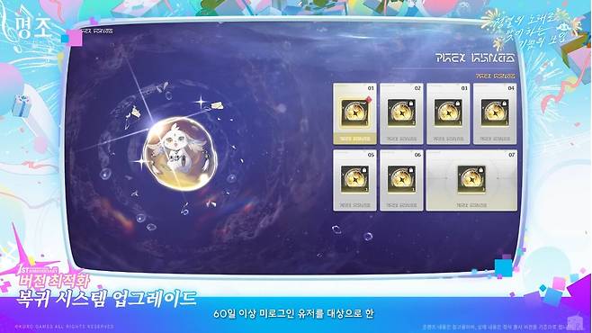 복귀 유저를 위한 복귀 시스템도 개편된다. 육성을 지원하는 '성장 보상'이 추가되며, 캐릭터 육성 재화를 캐는 강적 토벌과 군가의 중주 보상이 2배로 적용된다. 기존 30일 미접속시 활성화되는 복귀 시스템 외에도 60일 이상 미접속한 유저를 대상으로 한 7일 출석 이벤트와 복귀 임무 보상도 추가된다.