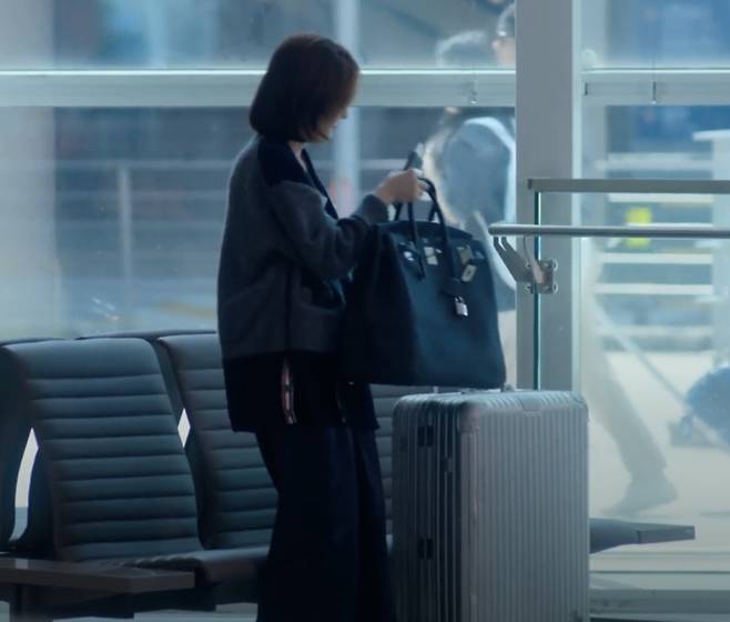 캐리어 위에 올라가 있는 에르메스 가방