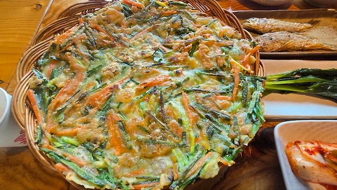 따개비밥과 홍합밥 둘 다 맛과 향이 다르다. 다른 곳에 가면 말린 홍합을 쓰기도 하는데, 말린 홍합이 아닌 생 홍합을 써서 그런지 향이 그리 강하지 않아 먹기 편했다. 따개비밥은 작은 전복과 흡사한데 꼬들꼬들한 식감이 일품이다. 한 입 넣는 순간 바다의 짭쪼름한 향이 코로 올라온다. 밥에 울릉도산 명이나물을 얹어서 먹으면 금상첨화다. 함께 주문한 해물파전도 해물의 양이 적은 느낌이 있지만 칼국수집에서 흔하게 먹던 파전과는 사뭇 다르다.