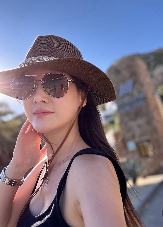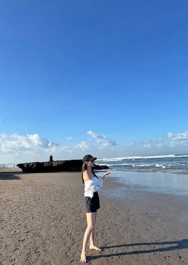 블랙 선글라스로 마무리한 룩은 세련된 리조트 무드와 완벽하게 어우러지며 휴양지에서 빛나는 ‘여름 여신미’를 뽐냈습니다.