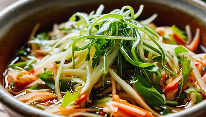 😋꿀팁: 기호에 따라 배나 무 등을 채 썰어 함께 넣으면 더욱 시원하고 풍성한 맛을 즐길 수 있습니다.