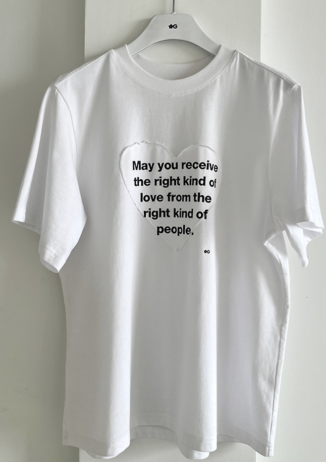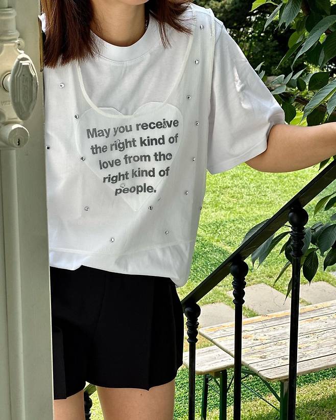 사진 속 티 정보 - youthkit pff girl white lettering heart cotton t-shirt