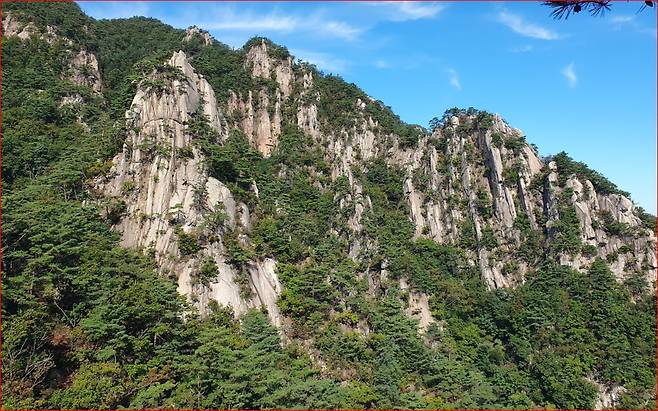 병풍바위 : 거대한 절벽이 병풍처럼 펼쳐진 풍경으로, 옛 전설에 따르면 이곳 풍광에 매료된 인도 수도승이 수행 중 발을 헛디뎠다는 이야기가 전해질 정도로 압도적입니다.