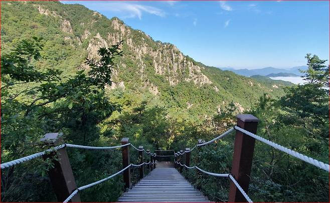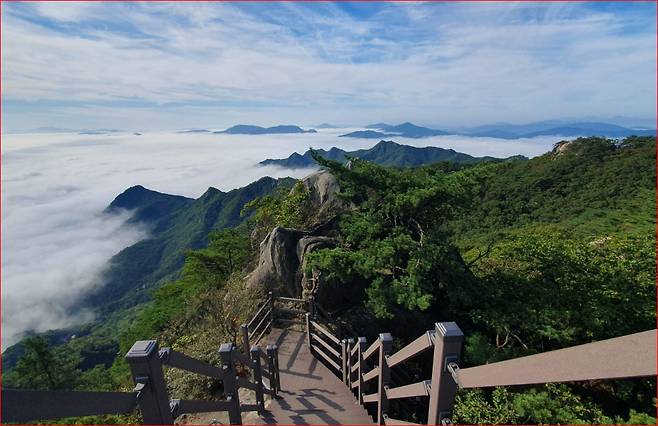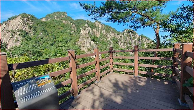 망경대 전망대 : 운악산 최고의 조망 포인트. 현재는 안전 데크가 설치돼 있어 파노라마처럼 펼쳐진 절경을 안전하게 감상할 수 있습니다.