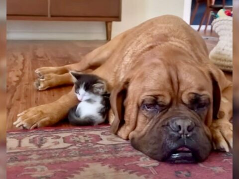 아직 아기인 새끼 고양이가 대형견을 엄마로 따르기 시작했다. 누구도 예상치 못한 따뜻한 기적이었다.