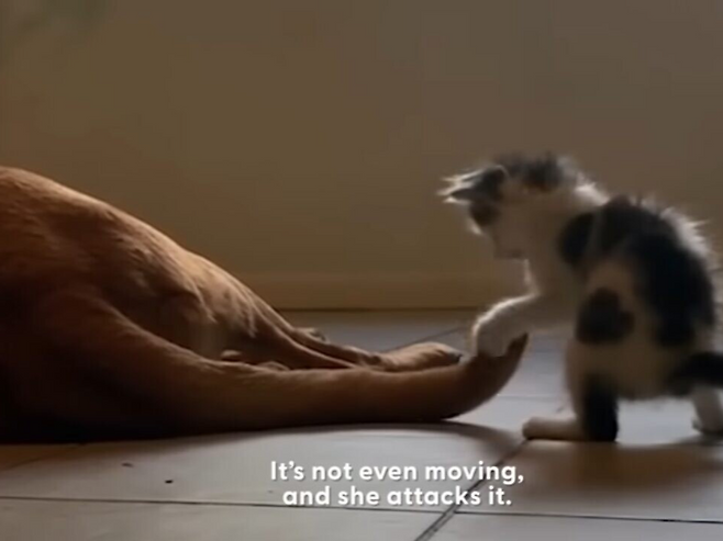 하지만 예상은 완전히 빗나갔다. 새끼 고양이는 거대한 개를 보자마자 뒤를 졸졸 쫓기 시작했다. 길고 부드러운 꼬리를 붙잡고 노는 걸 제일 좋아했으며, 그 거대한 존재를 마치 ‘엄마’처럼 따랐다.