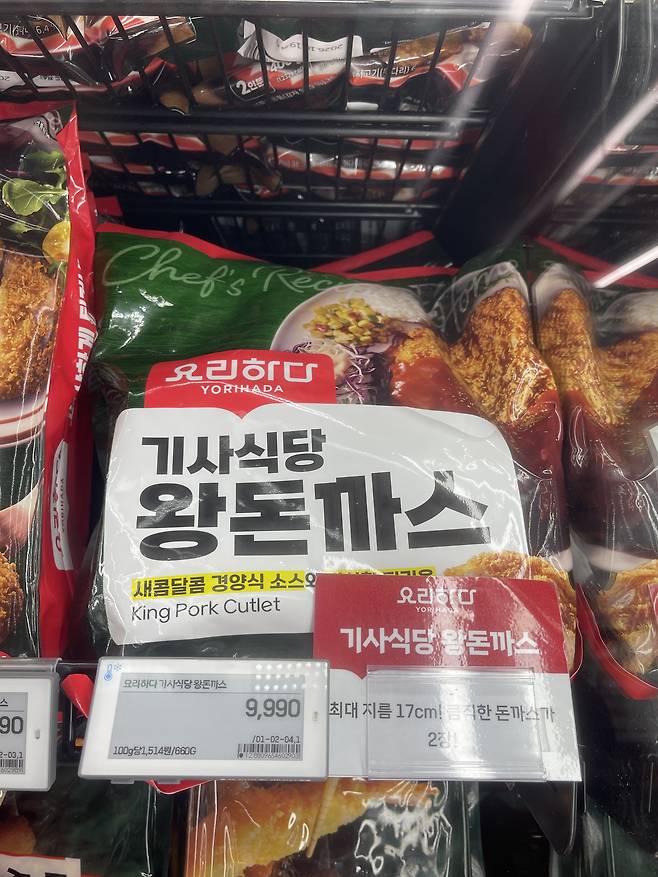 두툼한 돼지고기 통살을 바삭한 빵가루 튀김옷으로 감싸 냉동한 “왕돈까스” 간편식이에요.