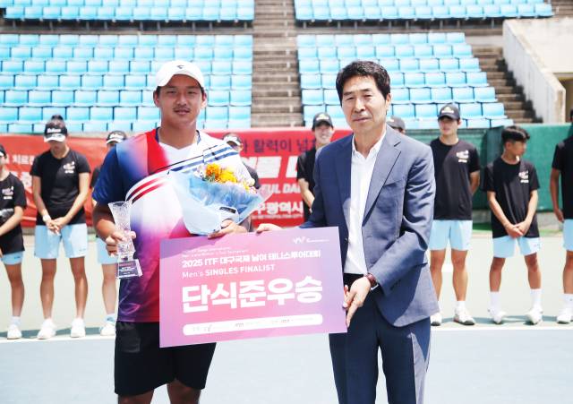 대구시청 테니스팀 박의성 선수가 5월 25일부터 6월 1일까지 대구유니버시아드테니스장에서 열린 '2025 ITF 대구국제남녀테니스투어대회'에서 단식과 복식에서 은메달을 획득했다.