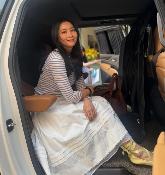 "황금골반으로 1분만에 출산했어요" 너무 예쁜 여배우, 화이트 스커트룩