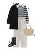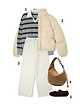 1 머플러 : 라주(48,000원) 2 1+1니트 : 로시로우(72,000원) 3 가디건 : 미치코런던(64,000원) 4 패딩 : 시야쥬(197,000원) 5 크림 진 : 시야쥬(85,000원) 6 토트백 : 아뜰리에드루멘(218,000원) 7 메리제인슈즈 : 츄바스코(89,000원)