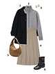 1 코트 : 오스트카카(359,000원) 2 가디건 : 미치코런던(64,000원) 3 귀걸이 : 오브라비쉬에(33,000원) 4 스커트 : 아워코모스(104,000원) 5 가방 : 엣클립(210,000원) 6 부츠 : 성윤주(278,000원)