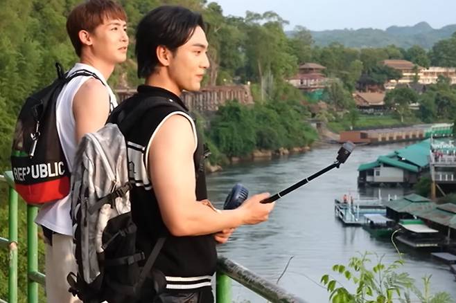 닉쿤과 백호는 방콕에서 기차를 타고 깐짜나부리로 향했습니다. 깐짜나부리는 태국의 아름다운 자연경관과 역사적 의미를 동시에 지닌 여행지입니다.