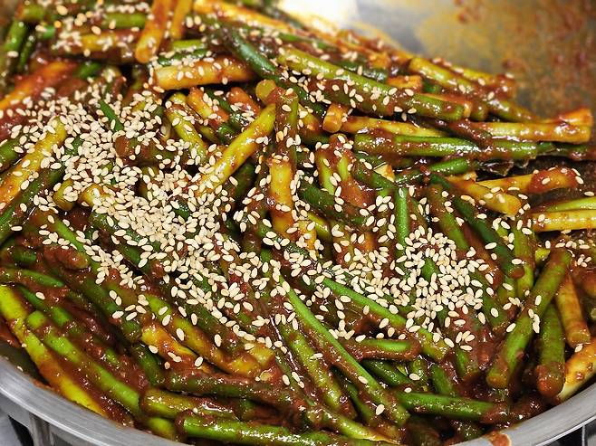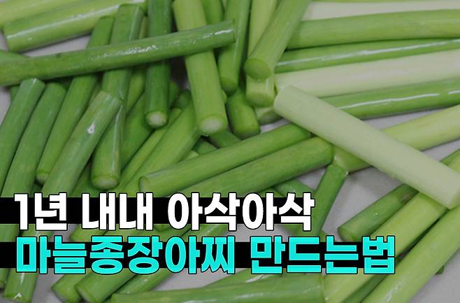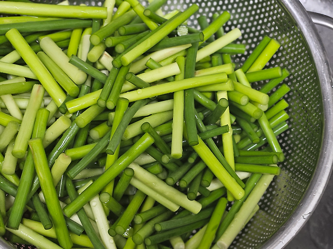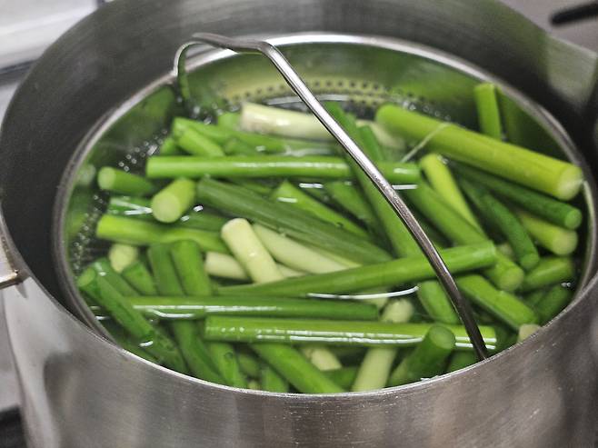마늘쫑은 오래 데치면 아삭함이 사라져요 꼭 20초만 데쳐주세요!