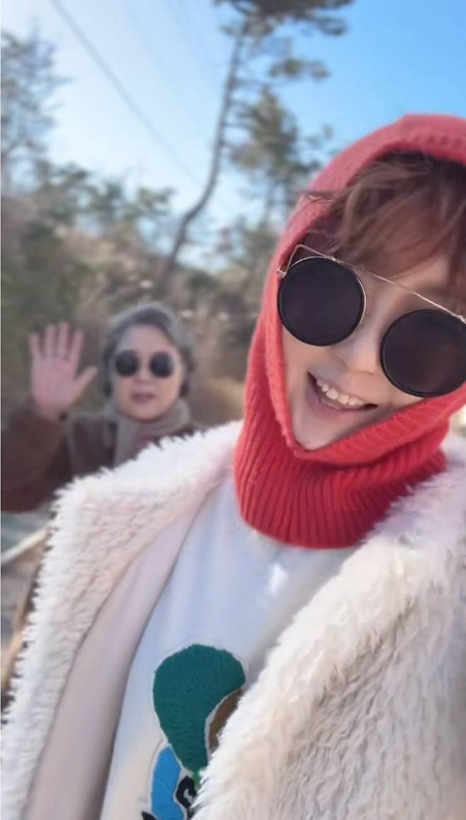 특히 레드 니트 발라클라바는 눈에 띄는 포인트로, 겨울철 특유의 무채색 코디를 생동감 있게 변신시켰습니다.