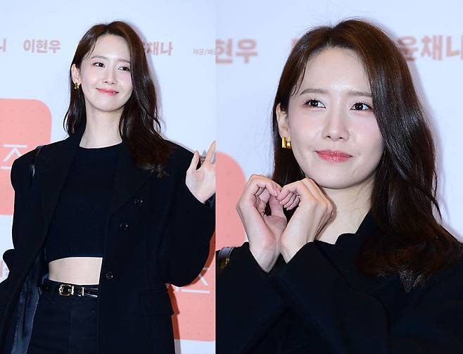 윤아는 블랙 크롭 티셔츠를 착용해 스타일리시하고 시크한 패션을 선보였습니다.
