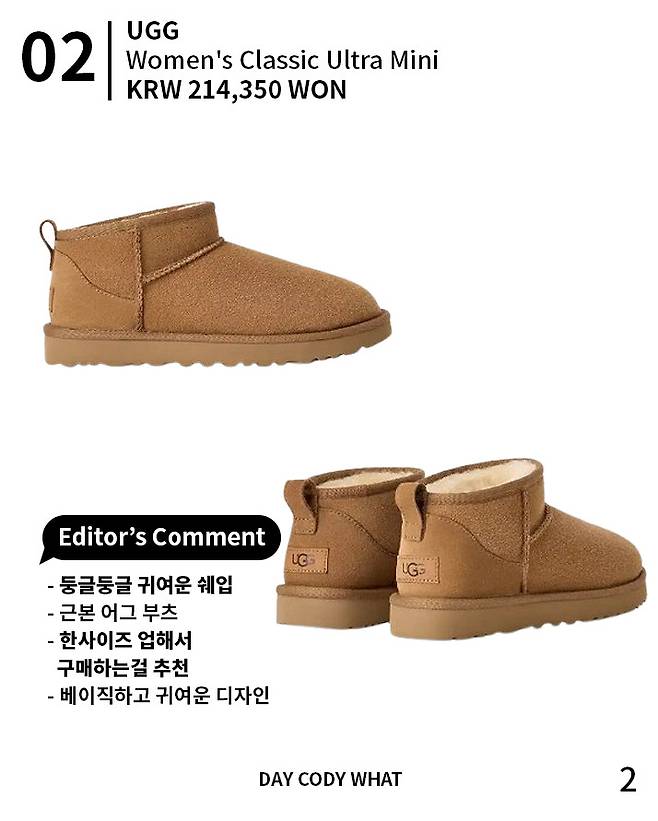 에디터는 근본인 UGG 클래식 울트라 미니를신고 다니는데 따뜻함은 물론, 귀여움까지 UP해줘서😎어떤 코디에도 활용하기 좋답니다😉