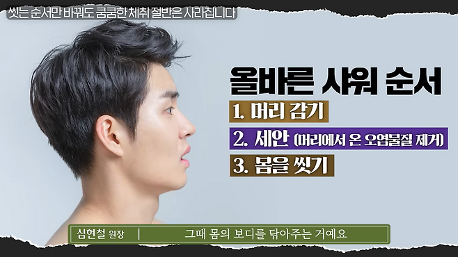 샤워하는 순서는 간단하다. 위에서부터 아래로 씻으면 된다.