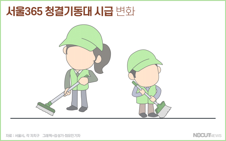 '2022년 서울365 청결기동대 운영계획'에 따르면 서울시는 청결기동대 선발과정을 시 주관에서 자치구가 직접 수행하도록 바꾸고, 임금 지급기준도 기존의 '건설협회 노임단가'에서 변경했는데요. 이에 올해 청결기동대의 시급은 1만 766원으로, 지난해보다 7천 원가량인 약 38% 감소했습니다.