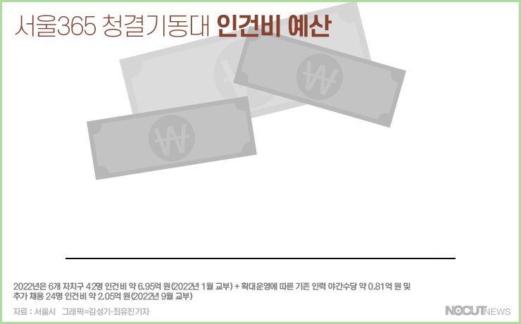 서울시가 자치구에 교부하는 청결기동대 인건비 예산은 매년 꾸준히 늘어왔지만, 올해 들어 급감했습니다. 지난해보다 청결기동대의 총인원이 3명 줄긴 했지만, 심야업무가 연장된 상황에서 인건비 예산이 약 44%나 감소한 건데요.
