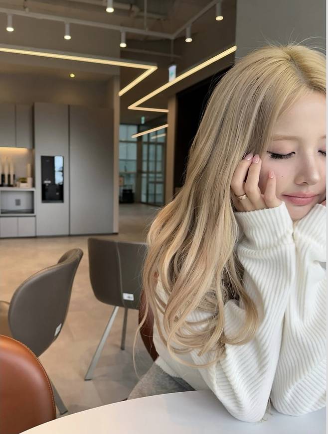 키스오브라이프 벨이 금발 롱 웨이브 헤어로 바비 인형 같은 비주얼을 자랑했습니다.