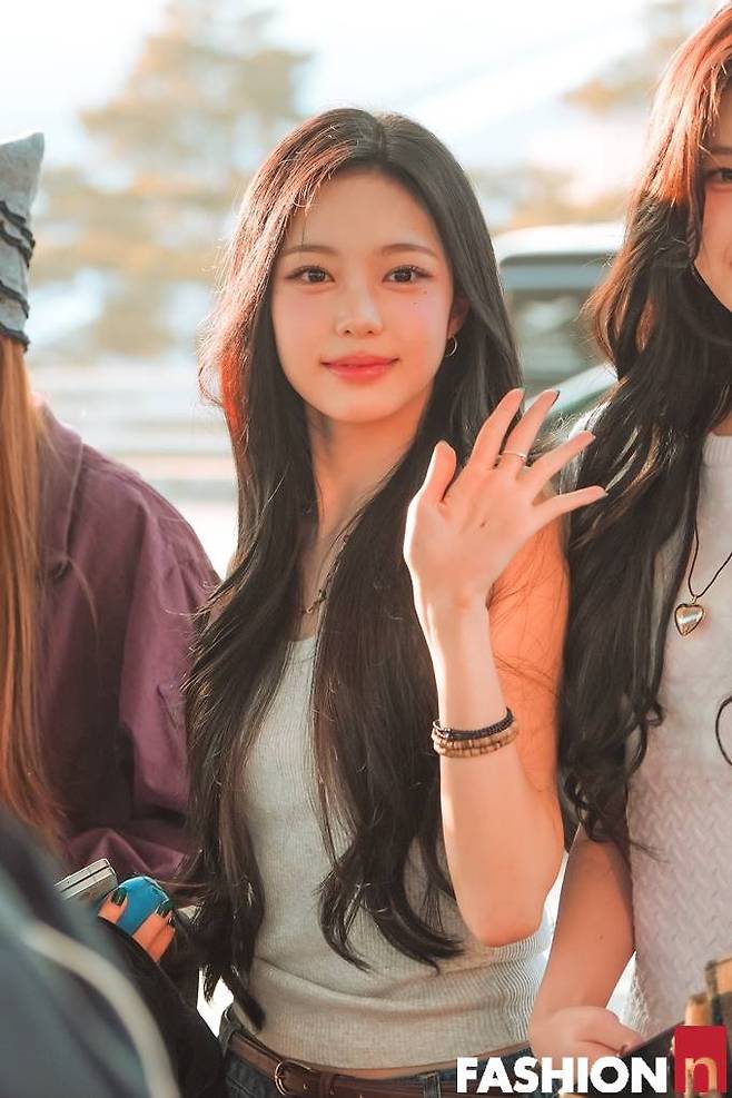 이날 이안은 쿨한 민소매에 데님 팬츠를 입고 아우터를 손에 든 출국룩으로 쿨하면서도 러블리한 스타일을 선보였다.