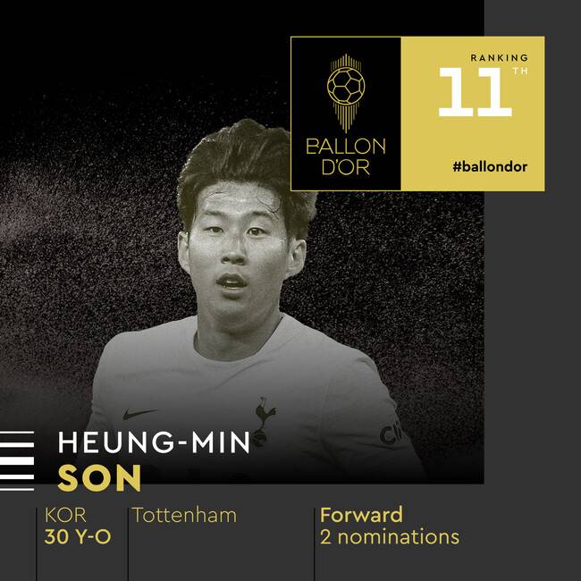 손흥민(토트넘 훗스퍼)이 2022 발롱도르에서 최종 11위에 올랐다.