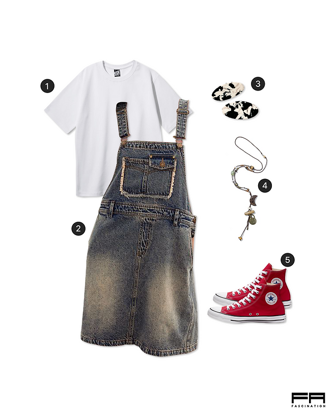 데님 멜빵 원피스를 매치하고,