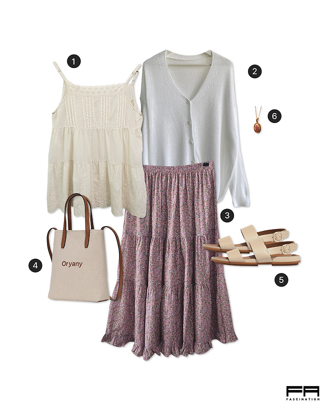 잔꽃 스커트로 러블리하게 매치해 주고,