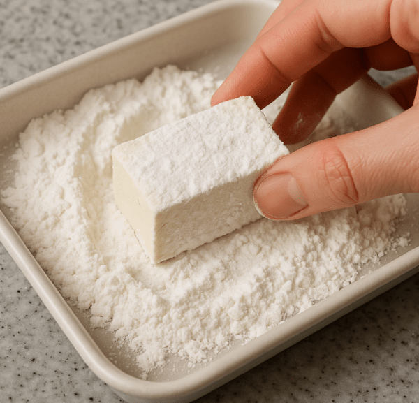 두부를 그냥 구울 때와 감자전분을 입혀 구울 때의 가장 큰 차이는 바로 ‘표면 질감’이다. 감자전분은 튀김옷 재료로 자주 쓰이지만, 얇게 코팅해 구웠을 때도 겉은 바삭하고 속은 촉촉한 결과를 만들어준다. 두부 겉면에 골고루 감자전분을 묻혀주면 팬 위에서 겉이 빠르게 익고, 전분막이 두부 속의 수분을 가둬 부드러운 내부를 유지시킨다.