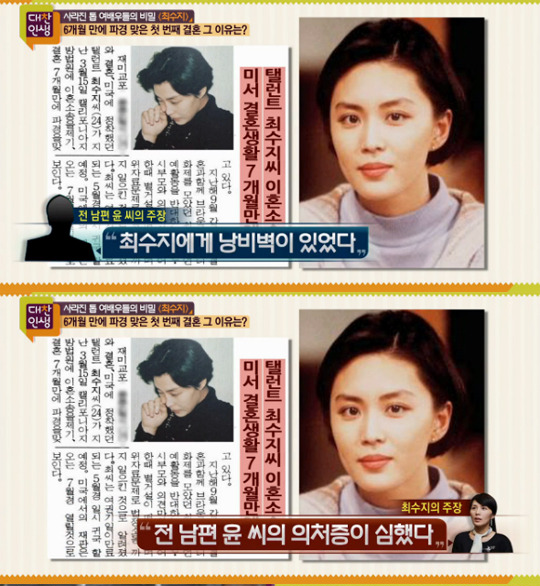 하지만 이 결혼은 6개월 만에 이혼으로 끝났고, 최수지는 인터뷰를 통해 “앞으로는 같은 실수를 반복하지 않겠다”고 밝혔다.