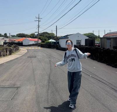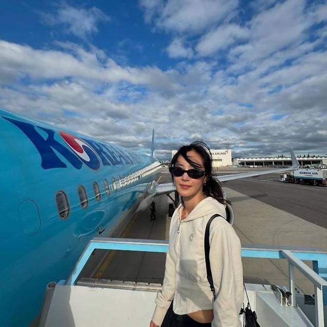 유리 언니는 대한항공 앞에서 베이지색 후드 스웨트셔츠에 선글라스, 블랙 숄더백을 매치해서 편안하면서도 스타일리시한 여행룩을 완성했어! 🧳 꾸안꾸 스타일의 정석이라고 할 수 있지! 😉 쌩얼에 가까운 모습인데도 선글라스 하나로 시크함까지 더해주다니… 역시 패피는 달라! 😎