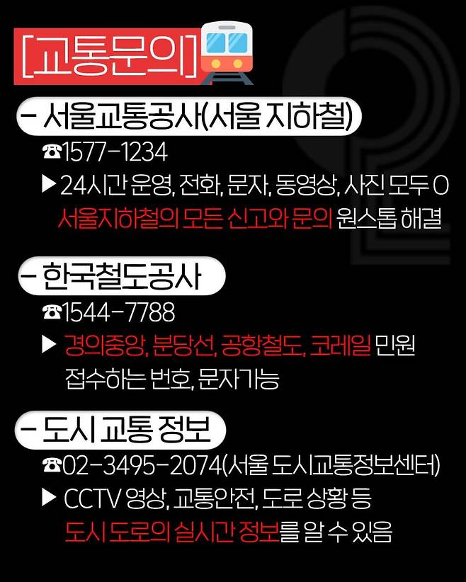 대부분의 기관은 평일 09:00~18:00 운영되며, 일부는 24시간(예: 112, 119, 1339) 운영됩니다.