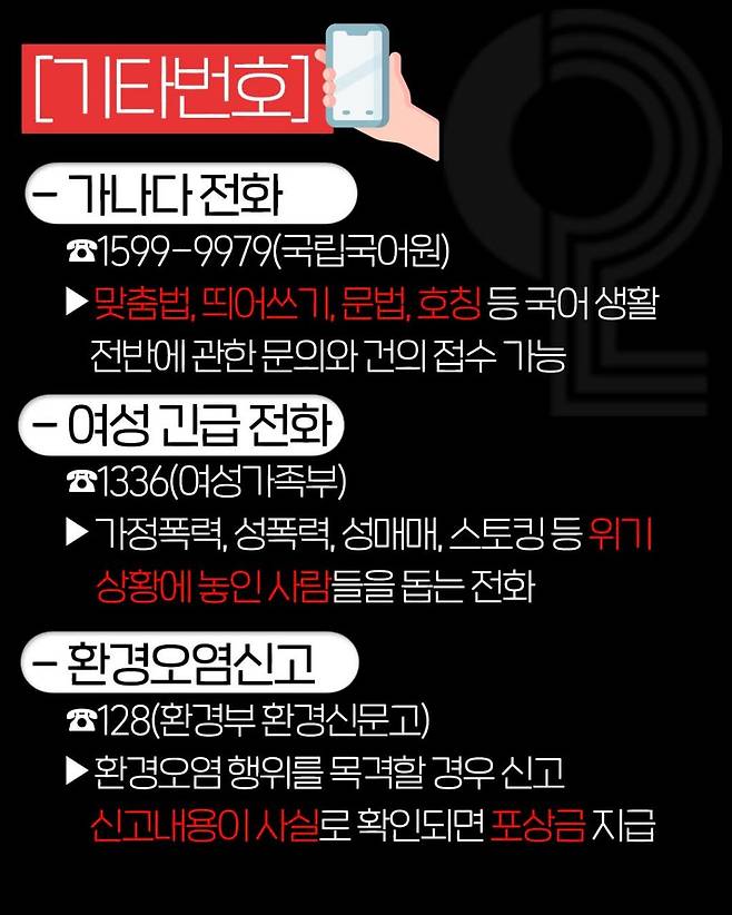 아래는 일상생활에서 알아두면 유용한 정부기관 전화번호를 분야별로 정리한 목록입니다.