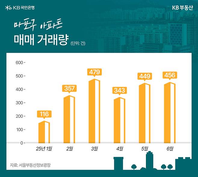 실제로 마포구는 지난 3월 서울시가 토지거래허가구역을 확대·재지정한 이후 아파트 거래량이 눈에 띄게 증가했습니다. 서울부동산정보광장에 따르면, 마포구의 아파트 매매 건수는 올해 1월 166건에서 2월 357건으로 증가했고, 3월에는 479건까지 급등했습니다. 이후 4월에는 343건으로 다소 줄었지만, 5월 449건, 6월 456건을 기록하며 다시 400건대 중반 수준을 유지하고 있습니다.